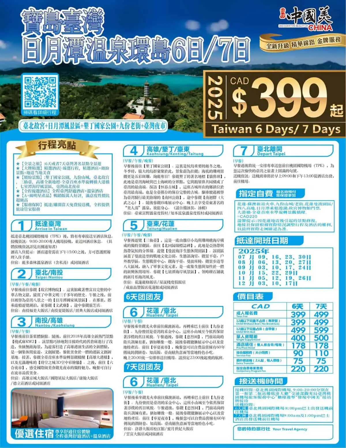 台湾日月潭温泉环岛6日/7日